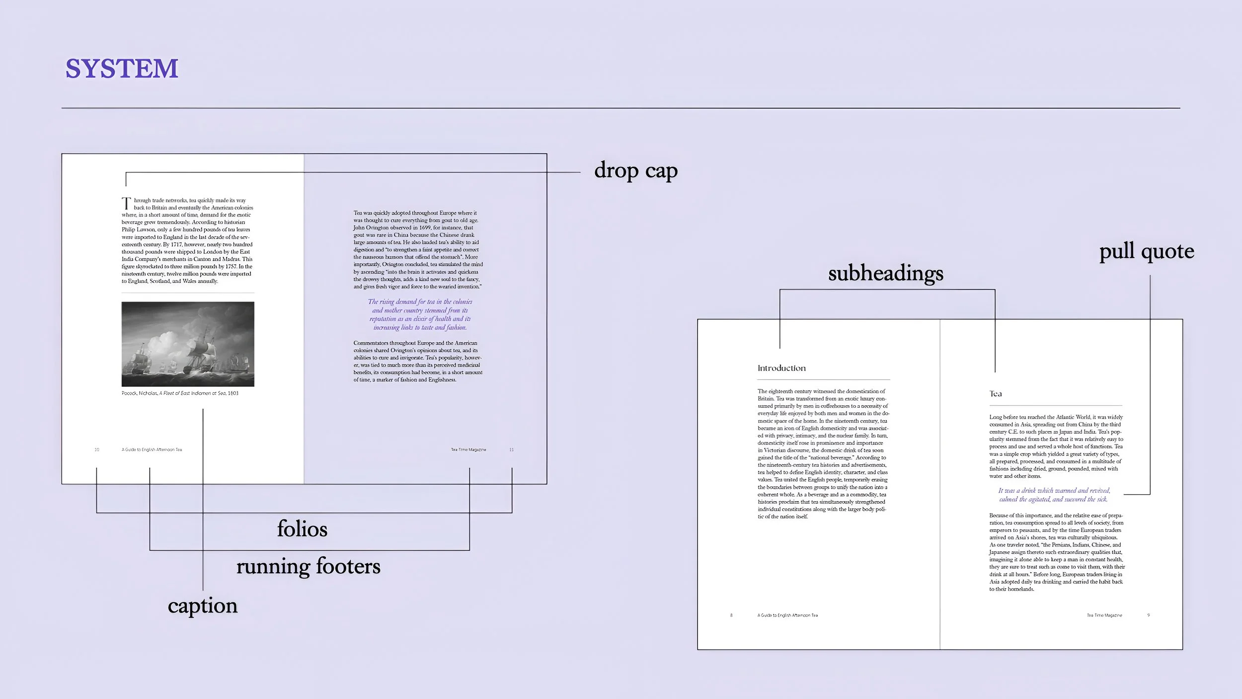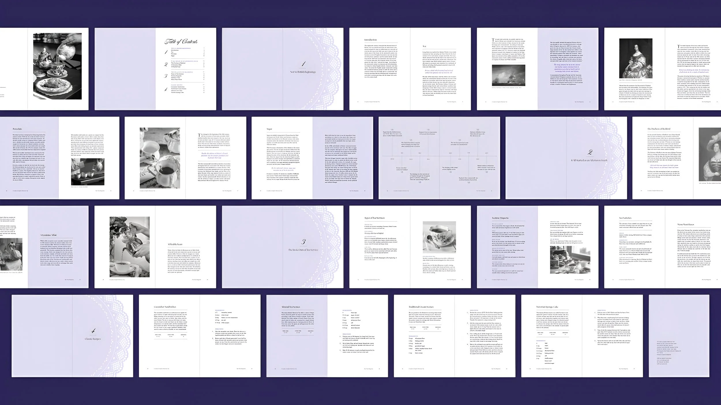 The “client” for this project was Tea Time Magazine, which commissioned a booklet to give attendees of their English retreat. Additional context about England’s long-standing relationship with tea offered participants a broader perspective on the tradition they were experiencing and provided them with guidance on how to incorporate a daily tea time into their own lives.